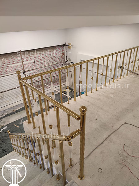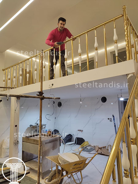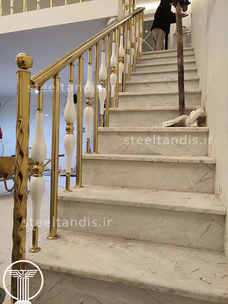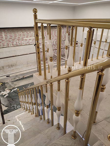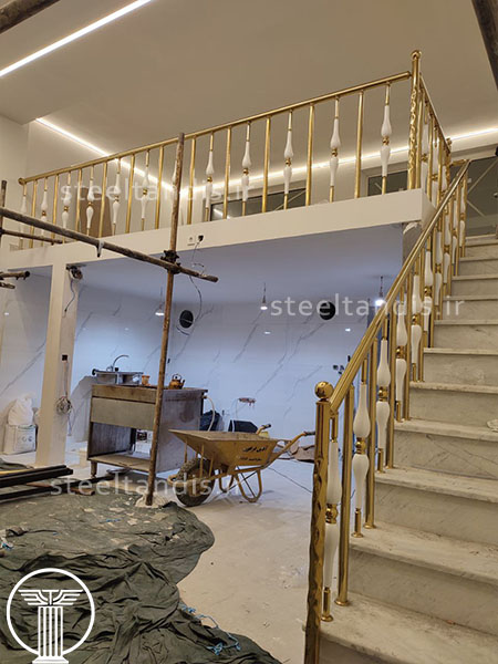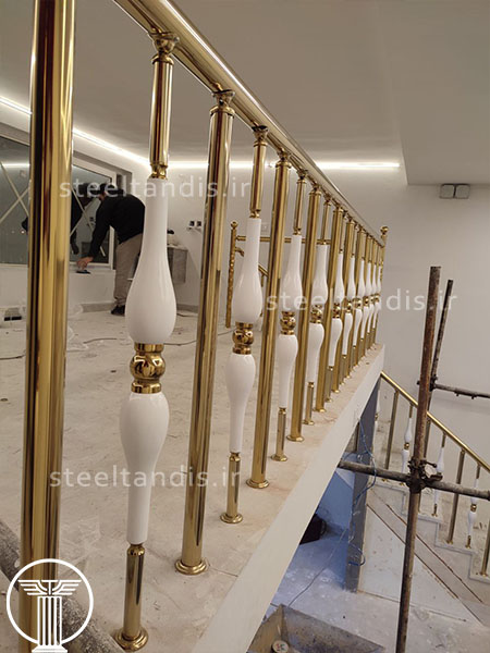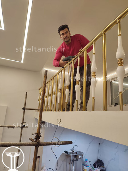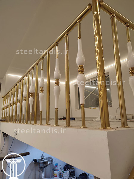 نرده پایه چوبی استیل طلایی با پایه اشکی