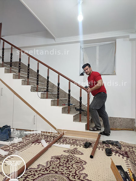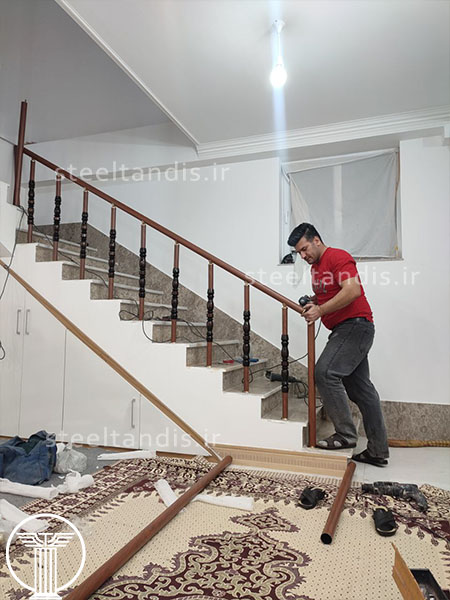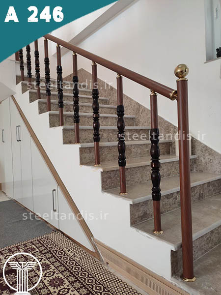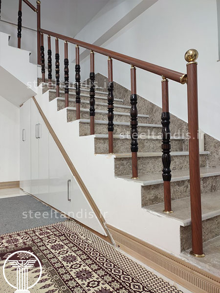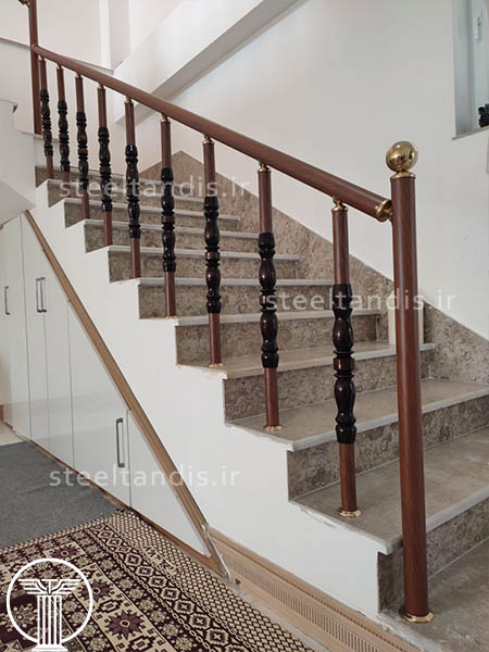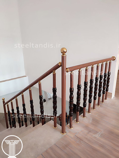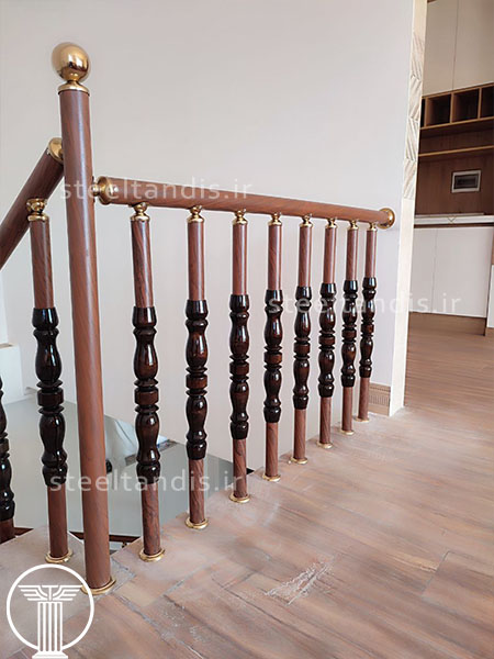 توضیحات : پایه چوبی با حفاظ طلایی / نرده چوبی،نرده چوب واستیل،نرده پایه چوبی،نرده طرح چوب،نرده کلاسیک داخل خونه