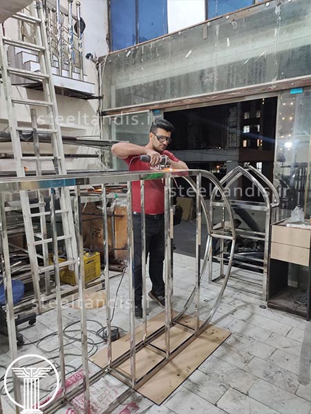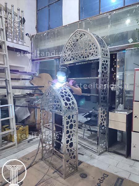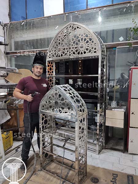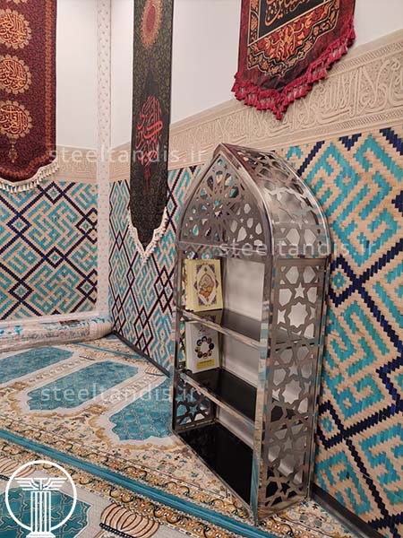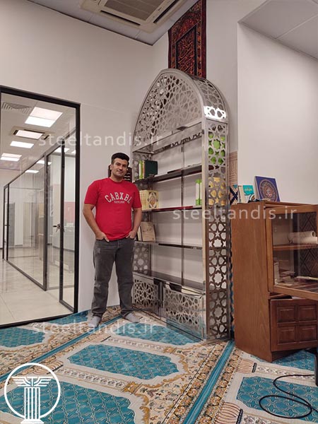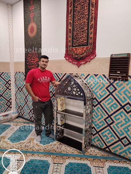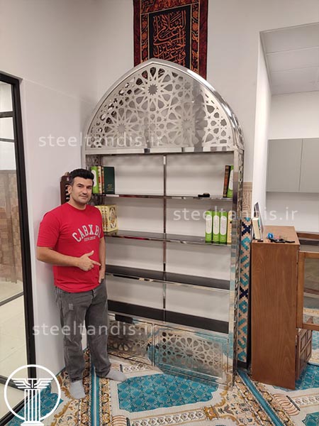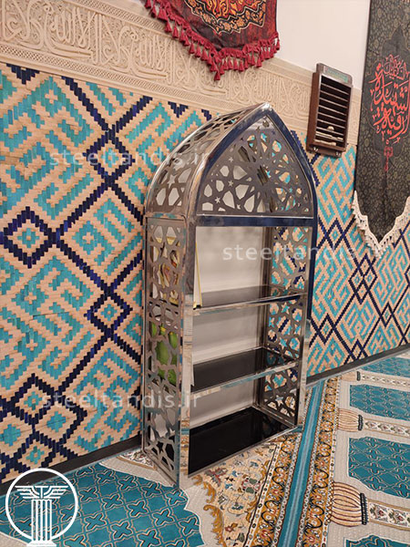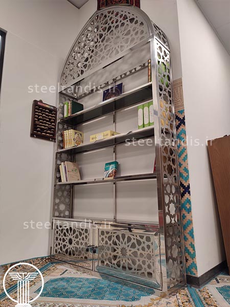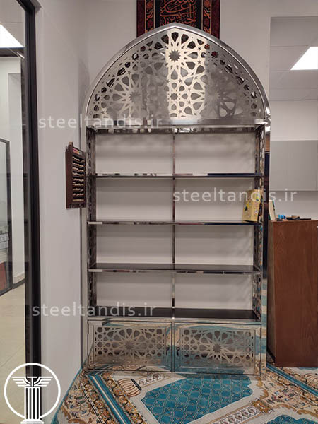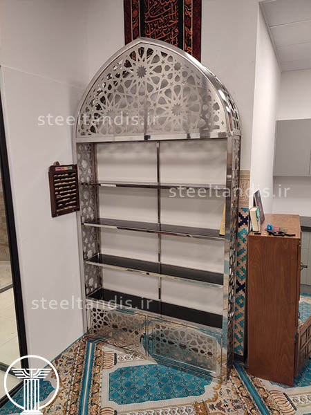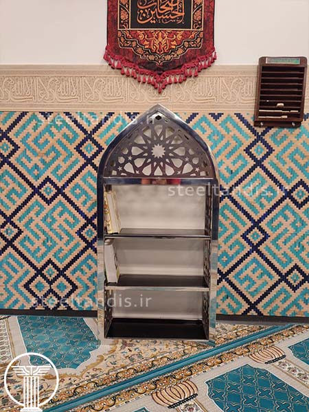 توضیحات : کتابخانه استیل ،کتابخانه اسلیمی ،کتابخانه مسجدی ،ویترین اسلامی با استیل 304